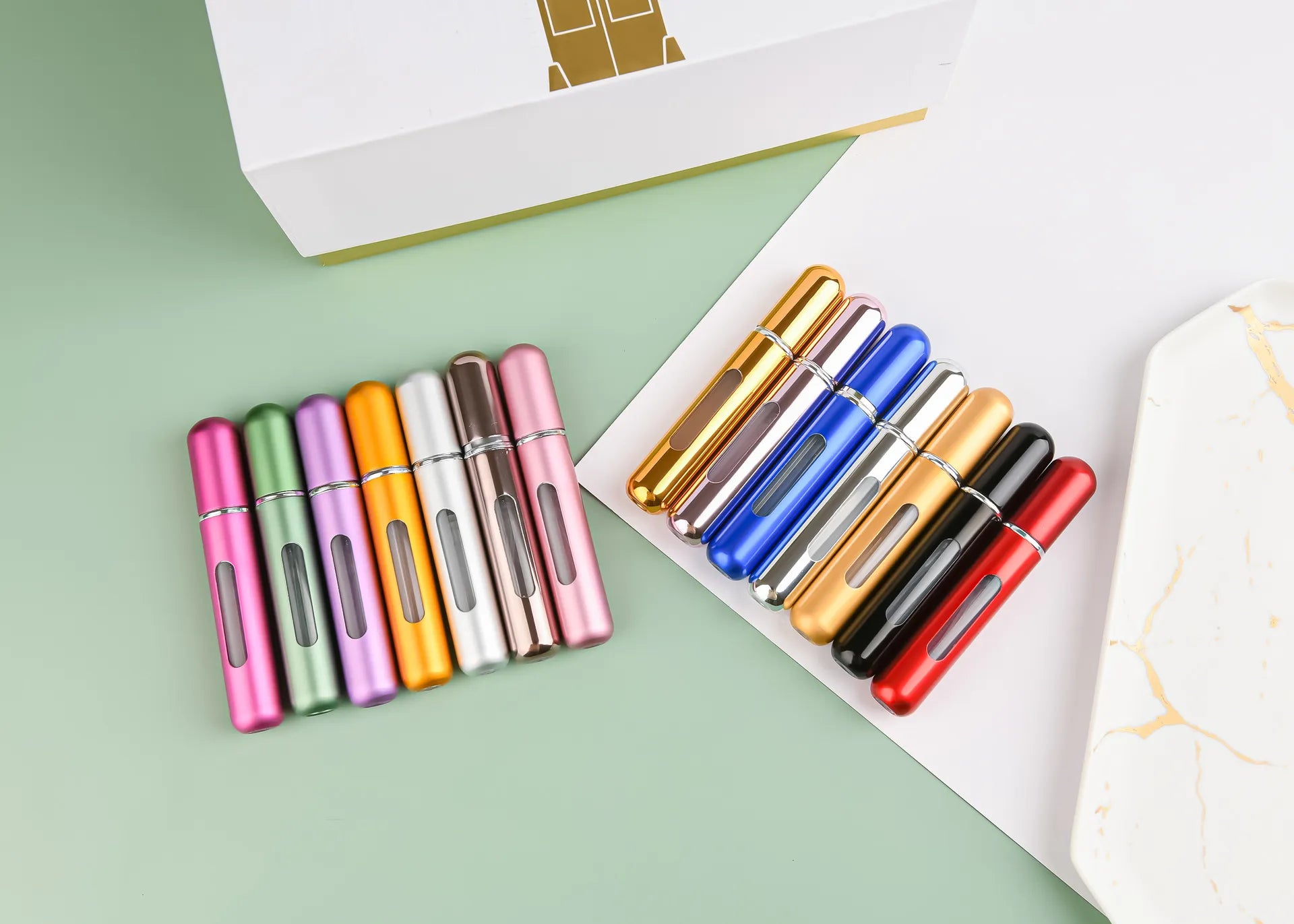 Refillable perfume spray with easy pump-to-fill technology In 5 different colors (Black, Silver, Pink, Gold, Purple), good for you to carry or organise your different fragrances. This Perfume Atomizer Bottle is handy travel size. Easy to use and easy to fill/refill, Just press the bottom against your favorite perfume gauge and keep clicking until it is refilled.